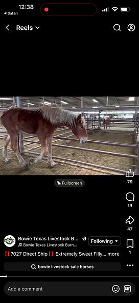 This week, a truckload of Belgians, around 15 young horses between 2–4 years old arrived at Bowie Texas Livestock. While we wish we could save them all, we’re focusing everything we can on helping three who need us most.